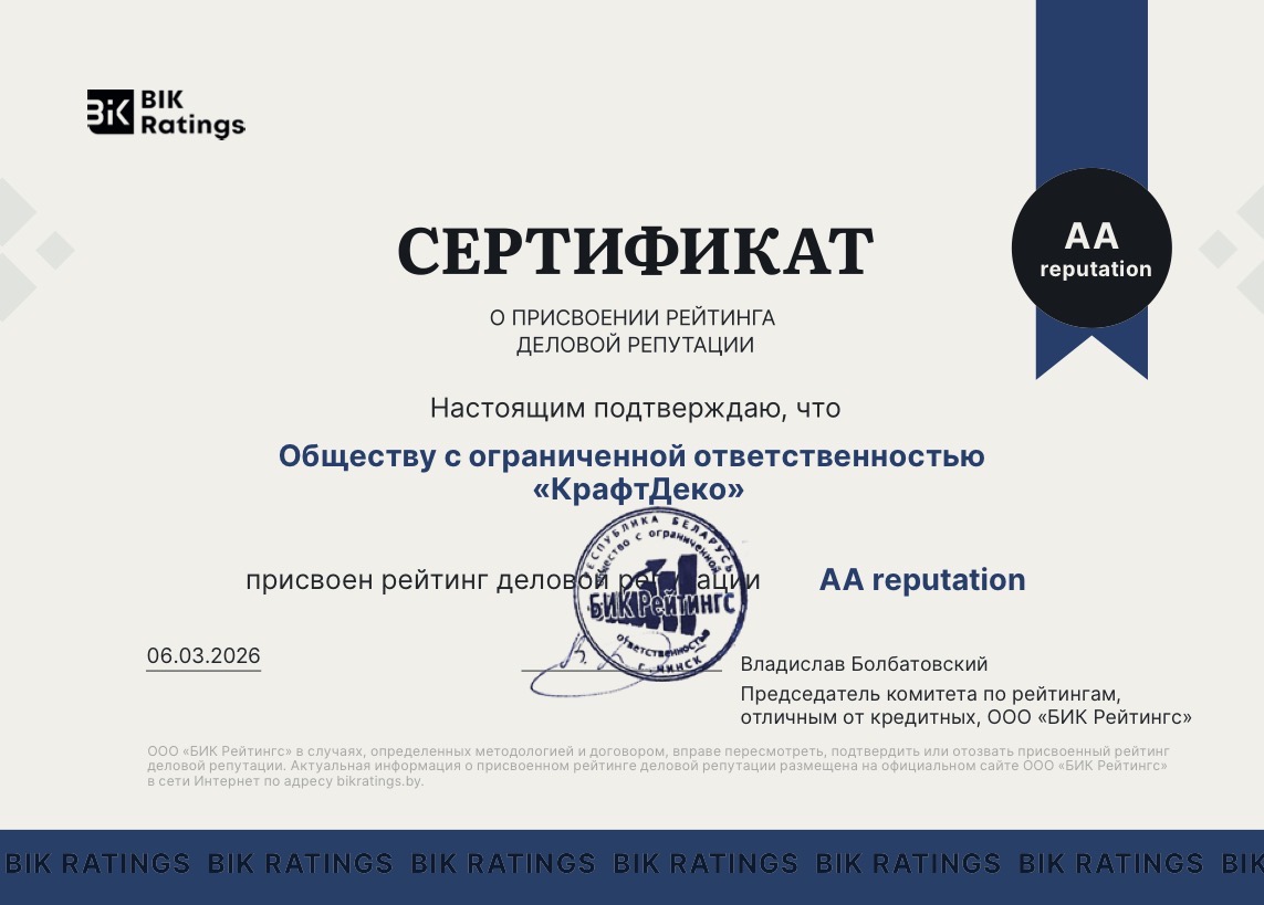 - ООО «КрафтДеко» присвоен рейтинг деловой репутации уровня AA reputation